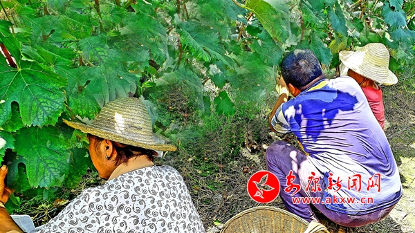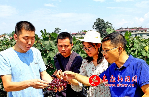 正午时分,在汉滨区五里镇刘营村一组,一波人正在“黑牛”上蹿下跳地带领下,挥汗如雨踏草穿林,来到葡萄树旁、甜杆儿林里、瓜前李下,拍照片、寻问题,完全不顾气温已达到“白热化”阶段。