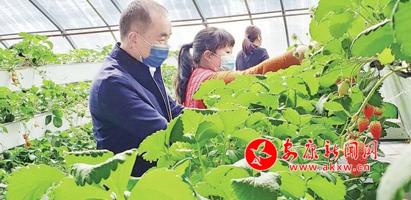2月25日(龙抬头的第二天),位于汉滨区建民办冯家坝的忠诚现代农业园一片闹热景象。熟透了的草莓,红油油,鲜嫩嫩,爽甜可口,吸引人们前来采摘。(记者 张思成 摄)