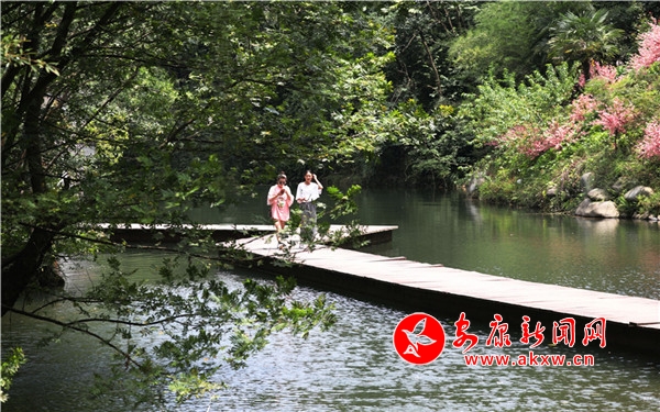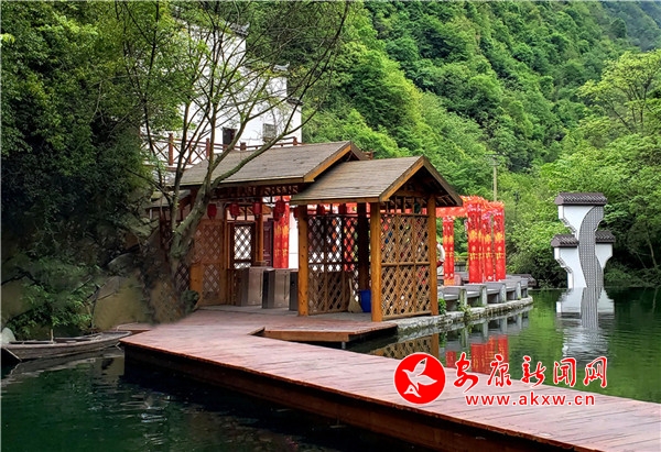 依山就势的亭台轩榭,与古木巉岩相得益彰,恰似保留了原始风貌的古典园林。林木茂盛,目光从叶脉的缝隙间透过去,便会发现,天地似在一湾水流里合二为一,邂逅的如此绝配。