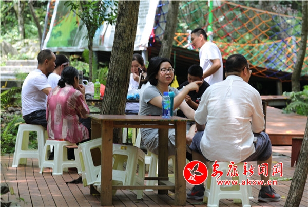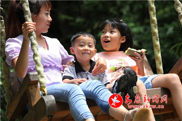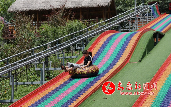 往来翕然,游人如织。几个稚童像百灵般迅捷,雀跃的身影在青竹翠蔓间穿梭,很快便隐没了身形,只余下串串清脆的歌声,与林间蝉鸣一唱一和。妙龄姑娘,随性地从五彩滑道旋转直下,如履云端,恍若惊鸿。柔情脉脉的恋人,安享着山涧的幽静,互诉衷肠,期冀着美好的未来。