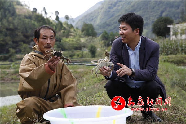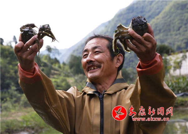 金秋时节,秦巴处处穰穰满家。进入汉滨区茨沟镇营盘垭村水产养殖基地,蟹农游石平正忙着下地笼挑选螃蟹,送往安康、西安等市场销售。2018年,游石平在营盘垭村流转20多亩水田养殖大闸蟹,平均每亩养殖水面产蟹500斤,每斤60元,今年收入有望达到60万元。Kzx安康新闻网