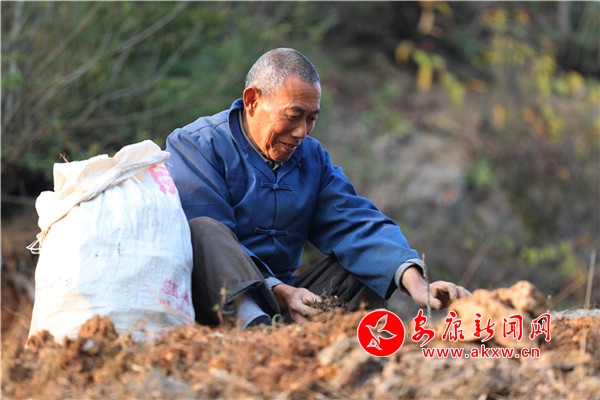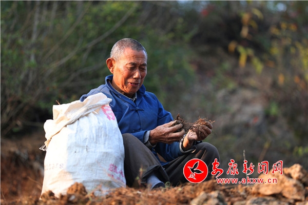 进入冬季,是一年的农闲时节。杨孝景却闲不下来,在亲友的帮衬下,开挖收获6分多地的白术药材。他说:“今年能在边角地里收获白术500余斤,按照市场每斤2元左右估计,能为家里多增收1000多元。”